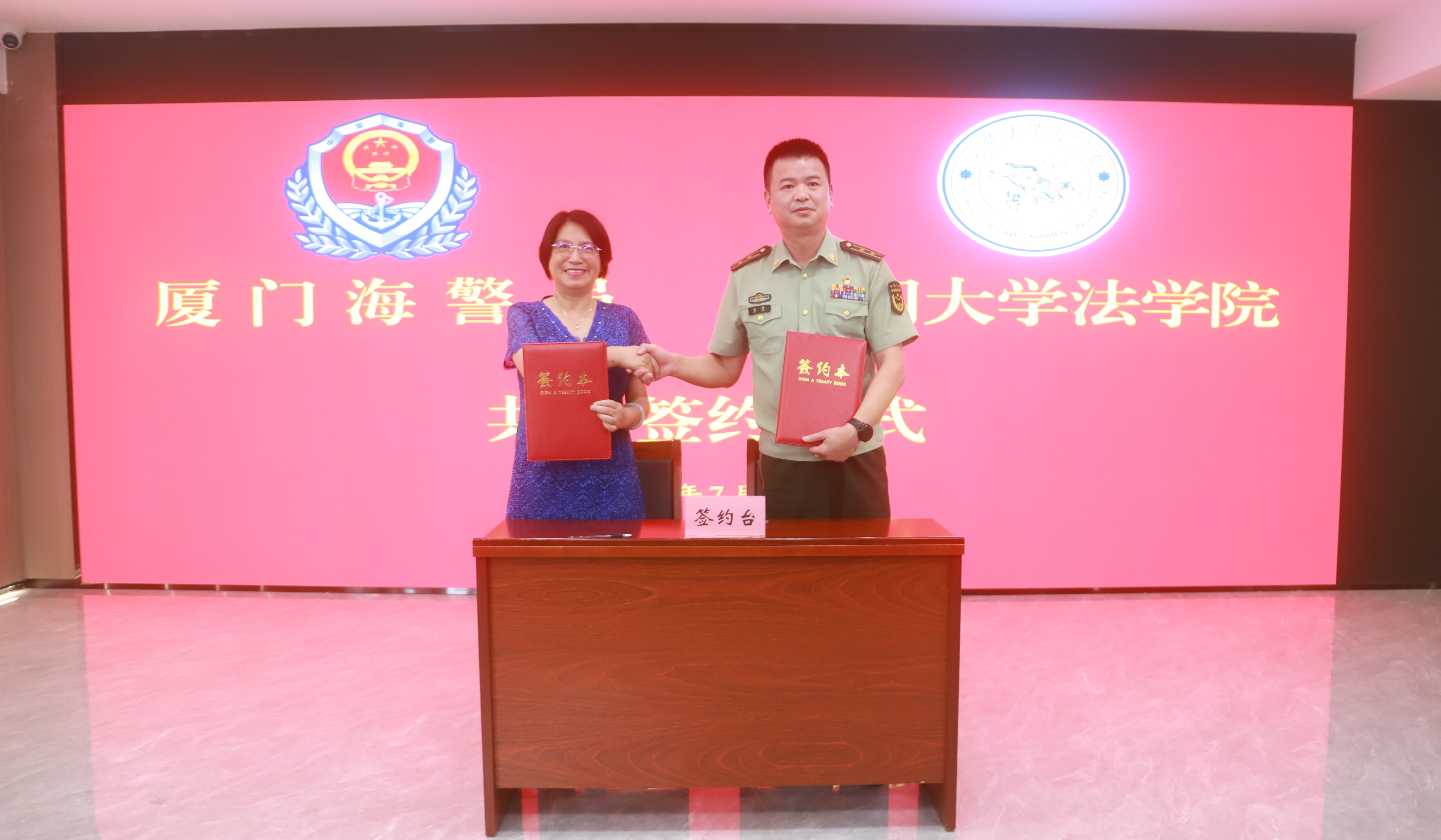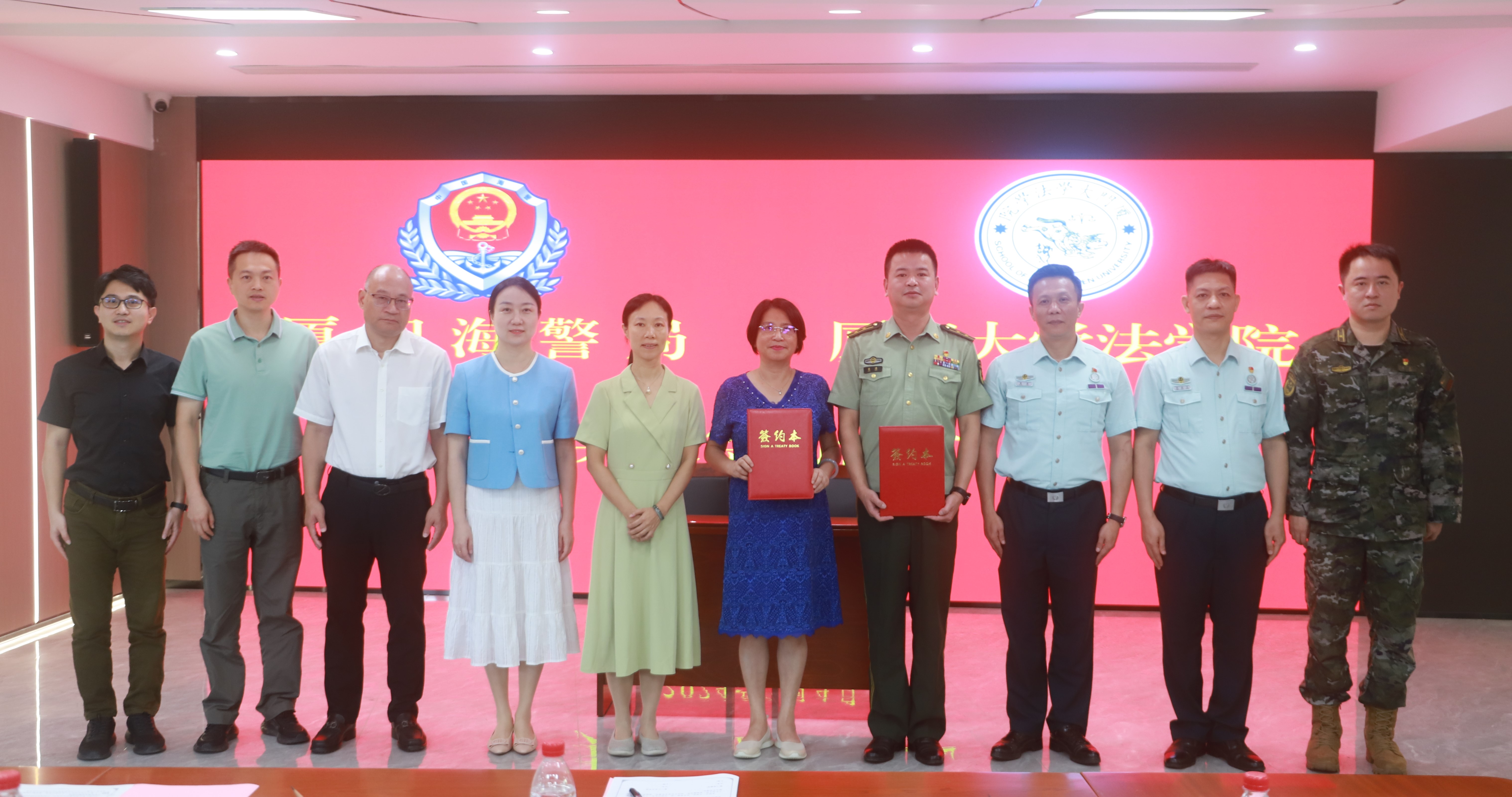 7月4日上午,法学院党委书记何丽新,副院长朱晓勤,党委副书记吴荻、张宇斌,郑金雄教授等一行前往厦门海警局参加合作签约仪式。厦门海警局局长梁清、副局长黄勇、政治工作处主任李晨、副主任陈振生等出席签约仪式。仪式由黄勇副局长主持。